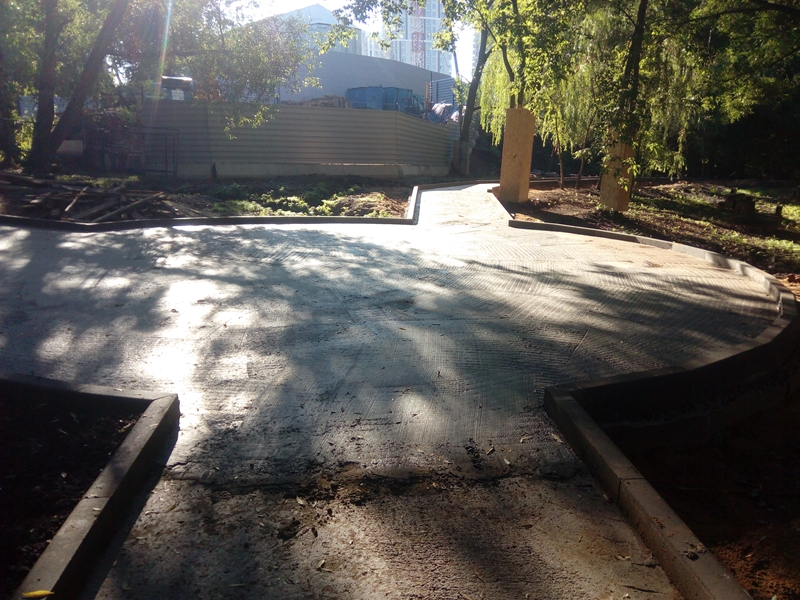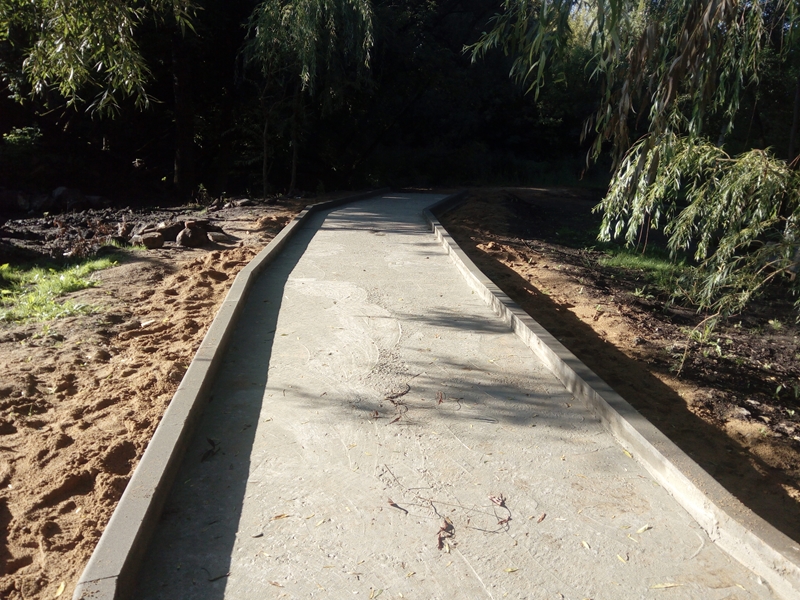 • и финальный штрих – закрепление установленного бордюра с помощью цементного раствора.