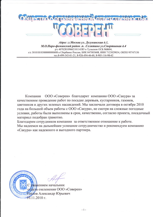 В садовом центре компании «САКУРА» в ассортименте представлены - плодово-ягодные деревья и кустарники, хвойные растения, лиственные деревья и кустарники. Ассортимент посадочного материала представлен, в основном, растениями с закрытой корневой системой (ком).