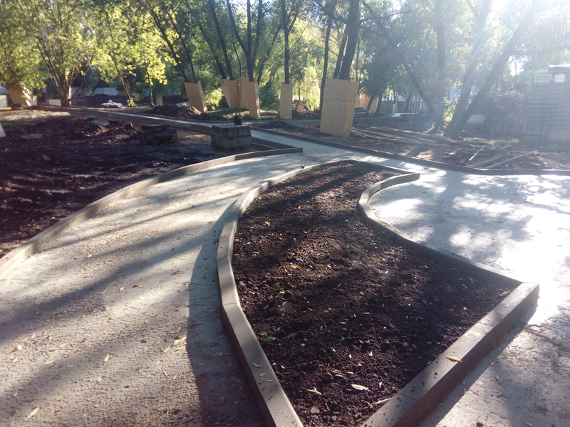 • затем осуществляется непосредственная установка бордюра;