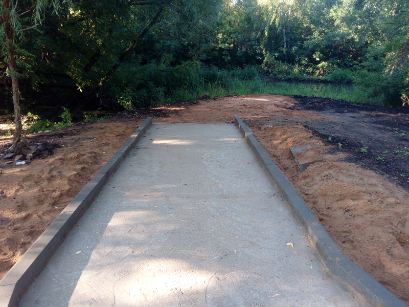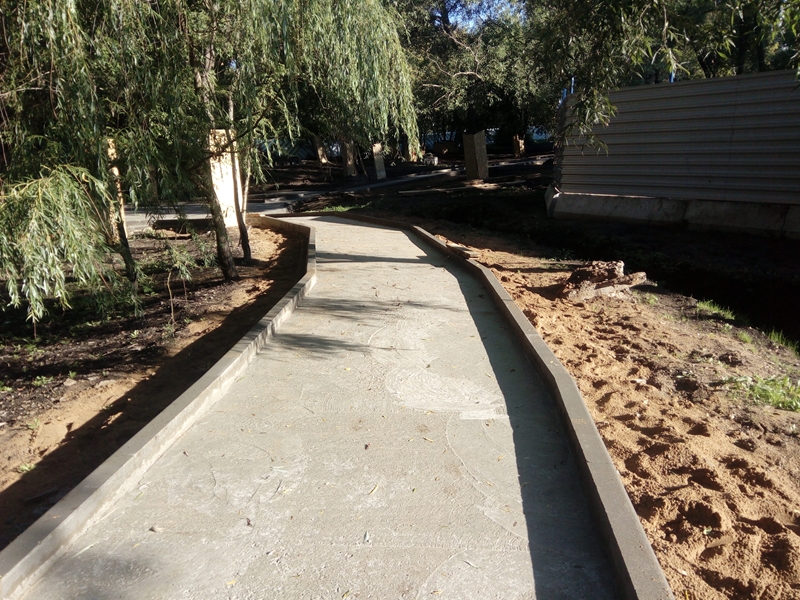 • и финальный штрих – закрепление установленного бордюра с помощью цементного раствора.