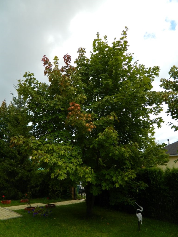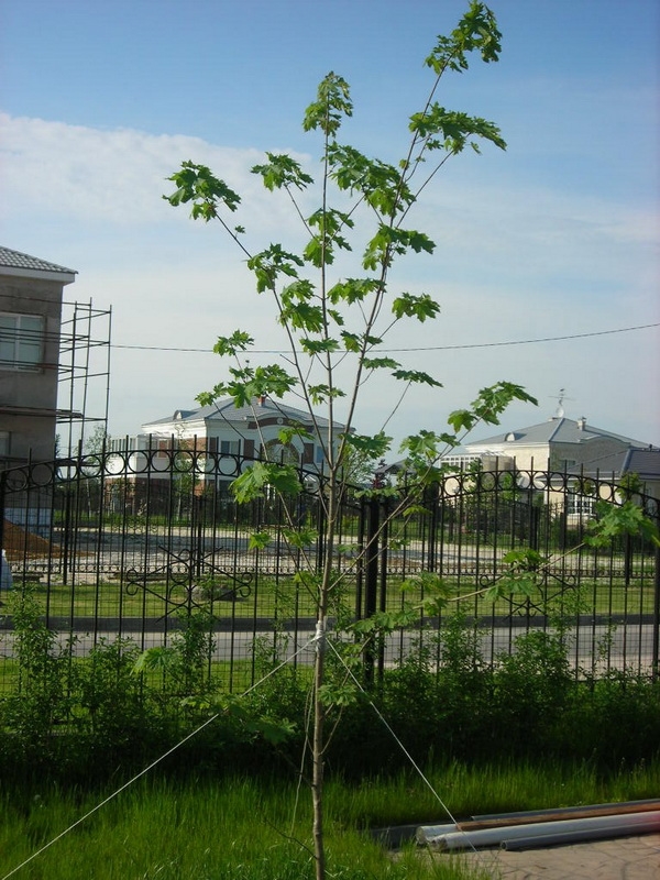 Клен остролистный - дерево семейства сапиндовых высотой 20 – 30 м. Листья округло-угловатые, пальчатолопастные. Листовые пластинки пронизаны многочисленными жилками разной толщины. Цветет весной, до распускания листьев. Цветки собраны в зеленовато-желтые пучковидные соцветия. В каждом плодике образуется одно плоское, округлое зерно чечевидной формы.